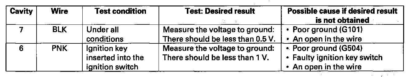 6. Reconnect the connectors to the immobilizer-keyless control unit, and make these input tests at the connector.
