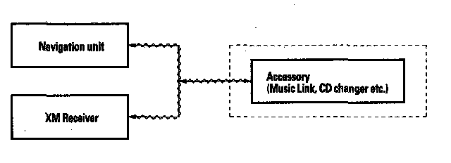 The internal GA-Net II bus passes information back and forth between the navigation display, the navigation unit, and the audio system components. The information passed on this bus are touch button commands, audio muting signal, audio (radio and XM), and any open in these bus lines can affect the navigation system or other audio accessory operation.