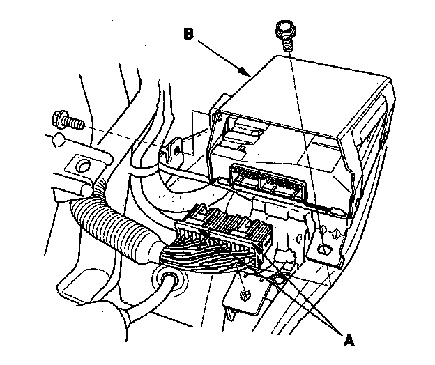 2. Remove the stereo amplifier connectors (A) from the stereo amplifier (B).