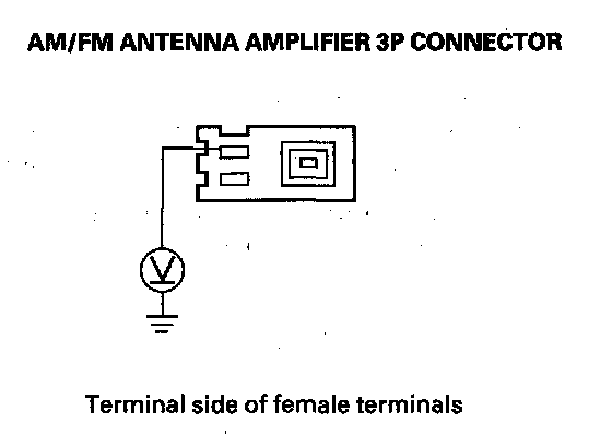 13. Measure the voltage between the AM/FM antenna lead connector No. 3 terminal at the AM/FM antenna amplifier and body ground.