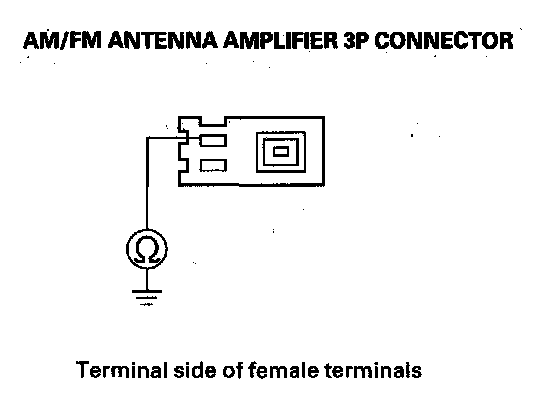 16. Check for continuity between the AM/FM antenna amplifier connector (3P) No. 3 terminal and body ground.