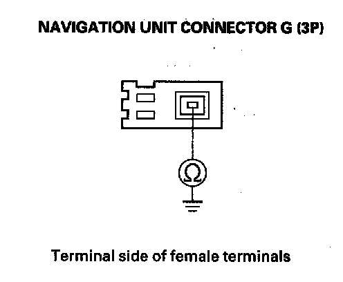 20. Check for continuity between navigation unit connector G (3P) No. 1 terminal and body ground.