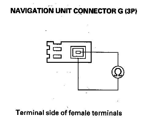 21. Check for continuity between navigation unit connector G (3P) No. 1 and No. 2 terminals.
