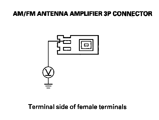 13. Measure the voltage between the AM/FM antenna lead connector No. 3 terminal at the AM/FM antenna amplifier and body ground.
