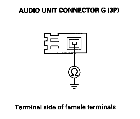 20. Check for continuity between audio unit connector G (3P) No. 1 terminal and body ground.