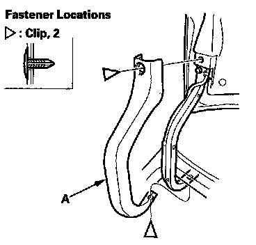1. Remove the clips from both trunk lid hinge covers (A), then remove the covers.