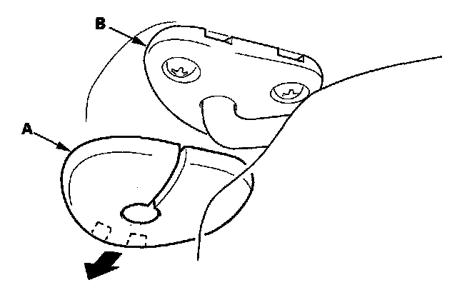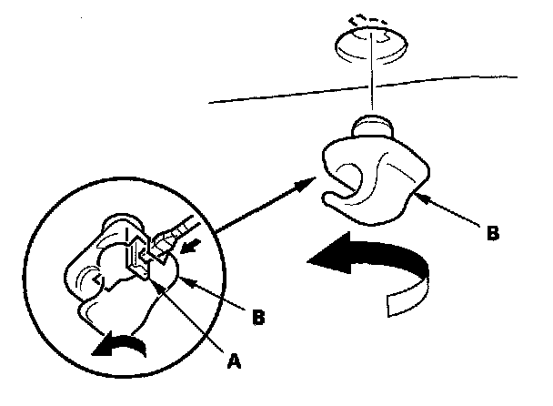5. Remove the sunvisor cap (A) from the bracket (B). Turn the cap, and remove it.