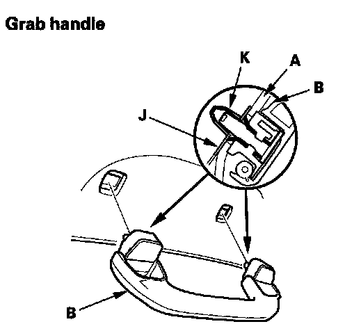 - When installing the grab handle, push on the handle against the bracket (J) until the clips (K) snap into place securely.