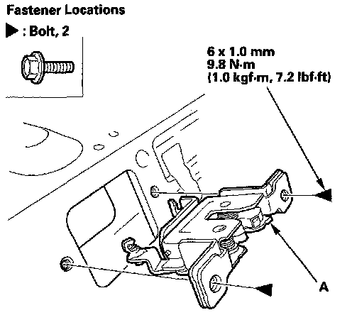 3. Remove the bolts, then remove the seat-back latch (A).