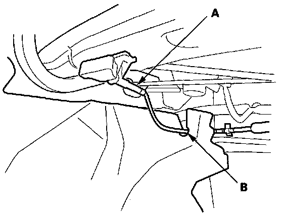 3. 2-door: Remove the rear seat-back release cable (A) out through the slit (B) in the trim panel.