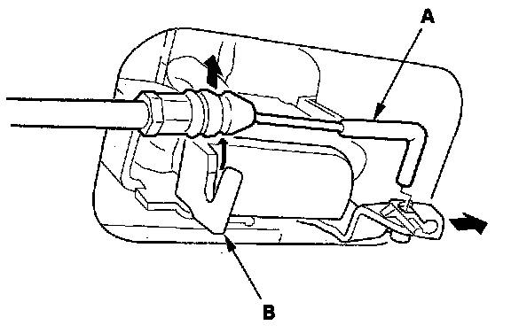 6. Install the release lever/cable in the reverse order of removal, and note these items:
