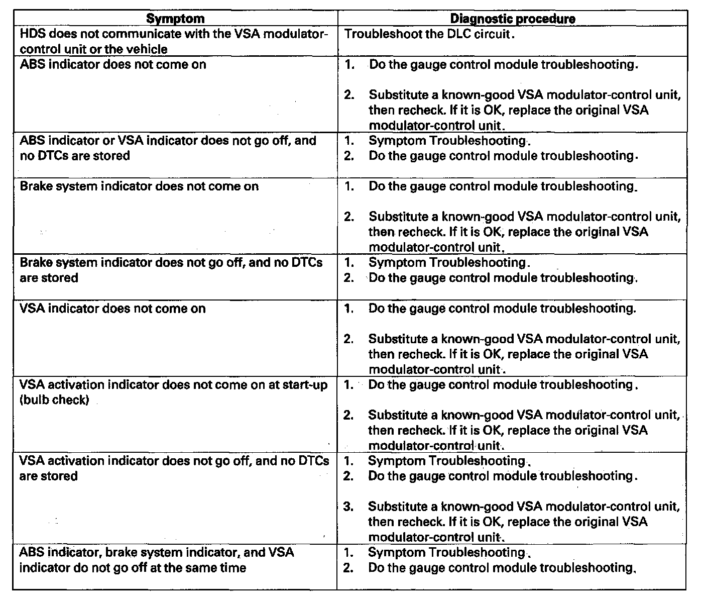 Symptom Troubleshooting IndexWhen the vehicle has one of these symptoms, check for a diagnostic trouble code (DTC) with the HDS. If there is no DTC, do the diagnostic procedure for the symptom, in the sequence listed, until you find the cause.