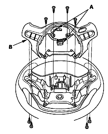 2. Disconnect the connectors (A), then remove the steering wheel trim (B).
