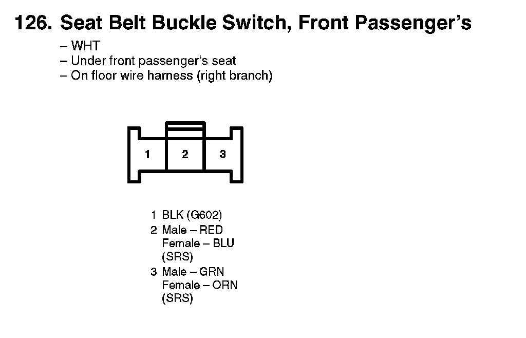 126. Seat Belt Buckle Switch, Front Passenger's: