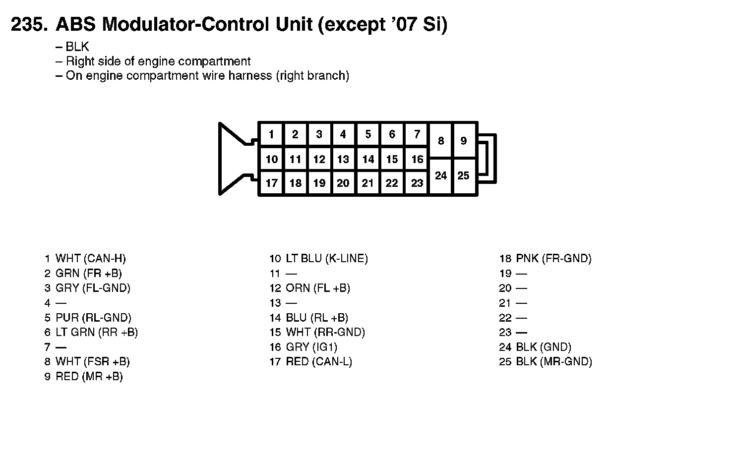 235. ABS Modulator-Control Unit (except '07 Si):