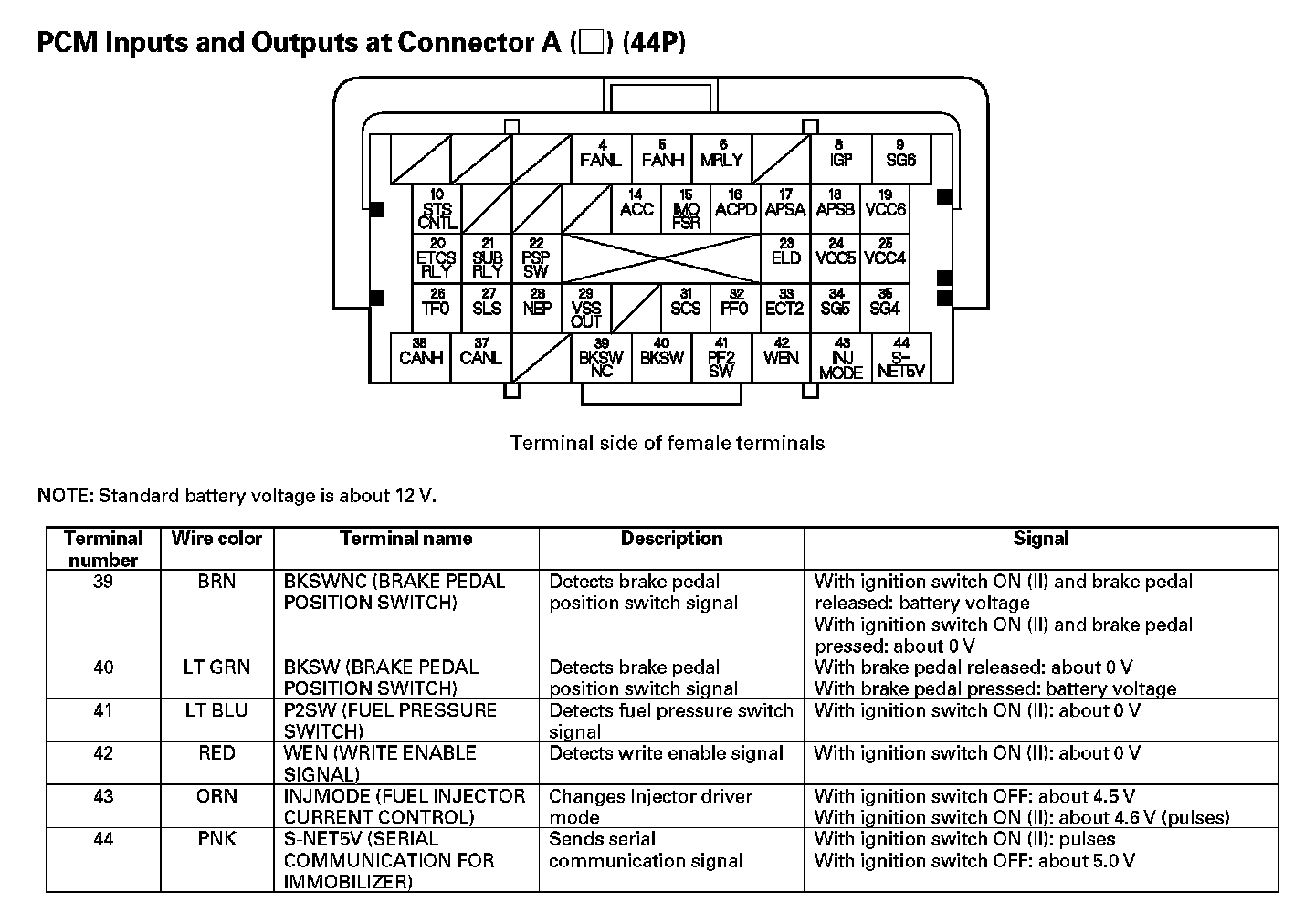 PCM Inputs And Outputs At Connector A (44P) (Part 1):