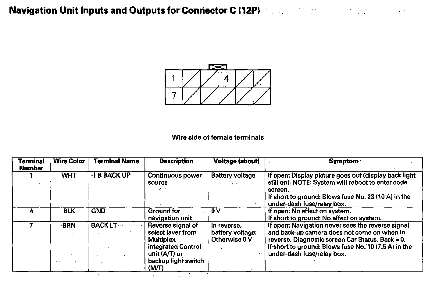 Navigation Unit Inputs And Outputs For Connector C (12P):