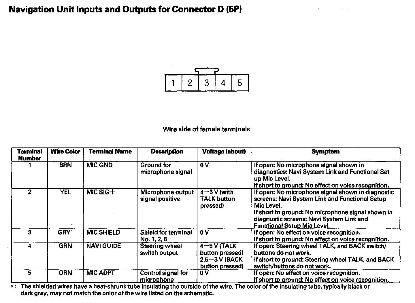 Navigation Unit Inputs And Outputs For Connector D (5P):