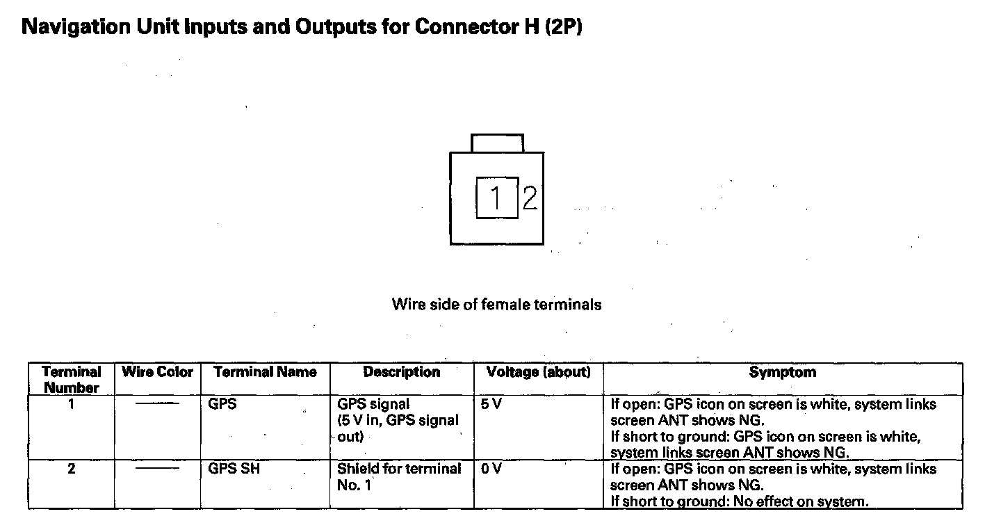 Navigation Unit Inputs And Outputs For Connector H (2P):