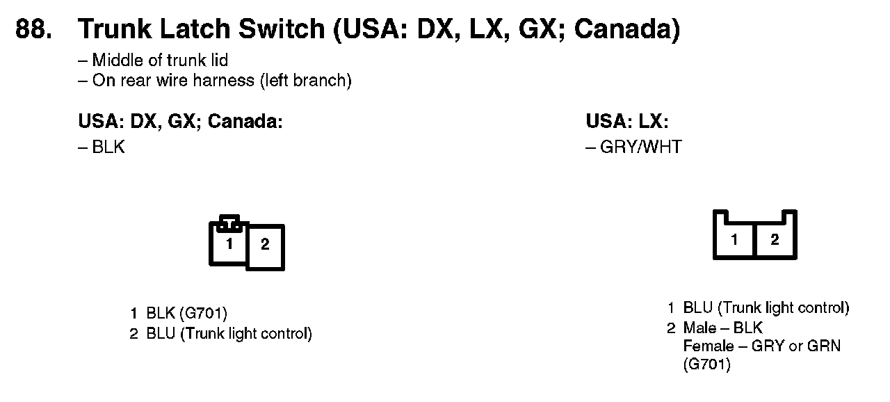 88. Trunk Latch Switch (USA: DX, LX, GX; Canada):