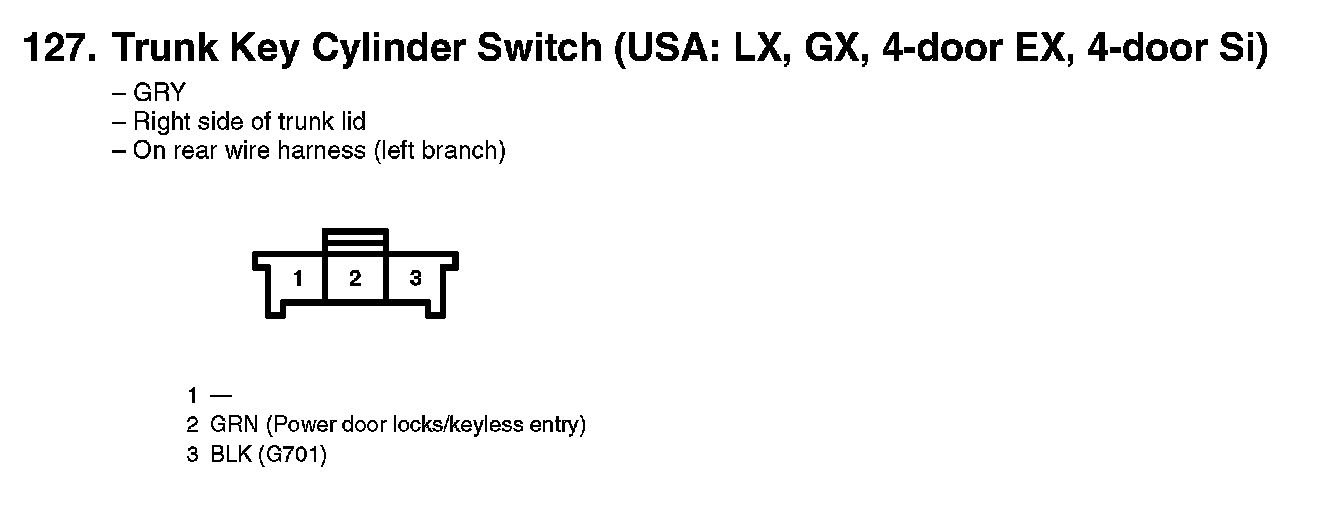 127. Trunk Key Cylinder Switch (USA: LX, GX, 4-door EX, 4-door Si):