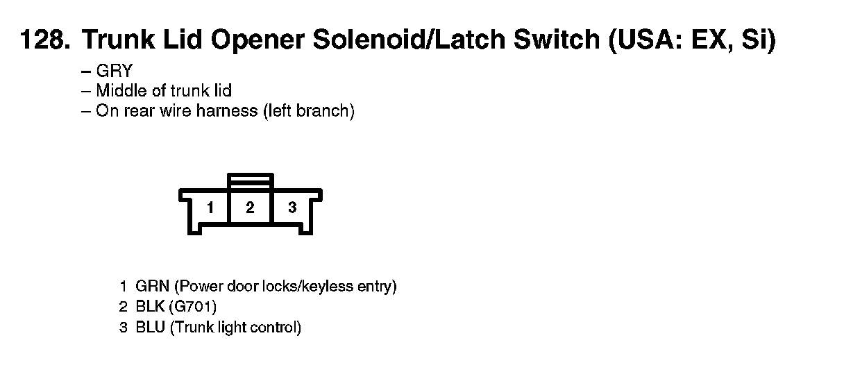128. Trunk Lid Opener Solenoid/Latch Switch (USA: EX, Si):