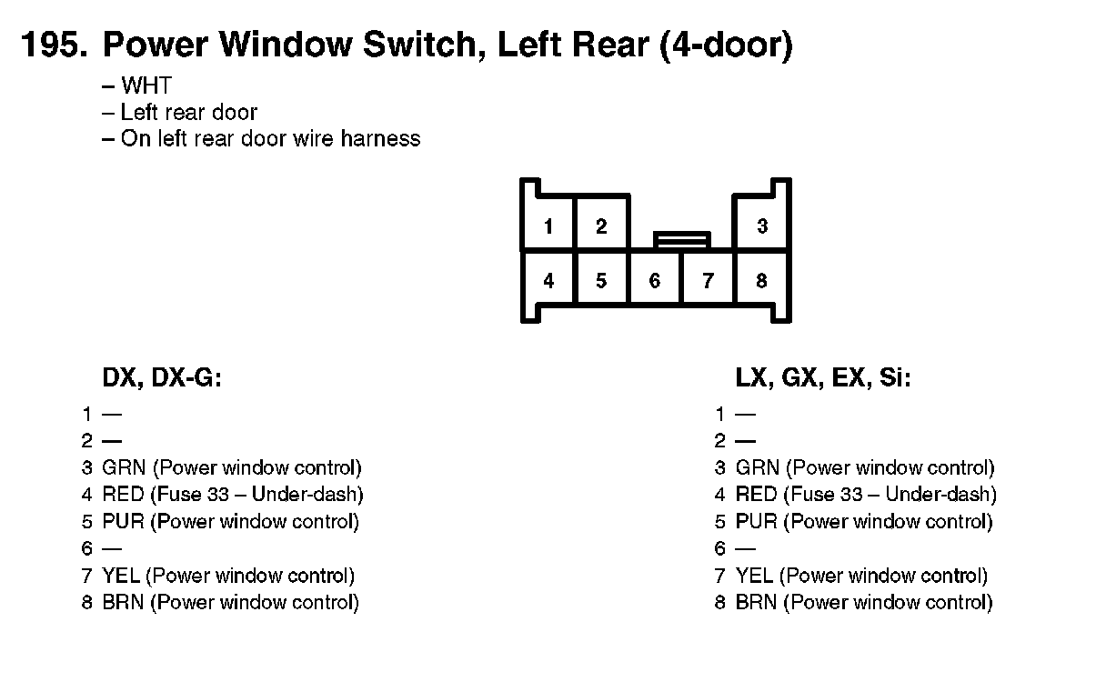 195. Power Window Switch, Left Rear (4-door):
