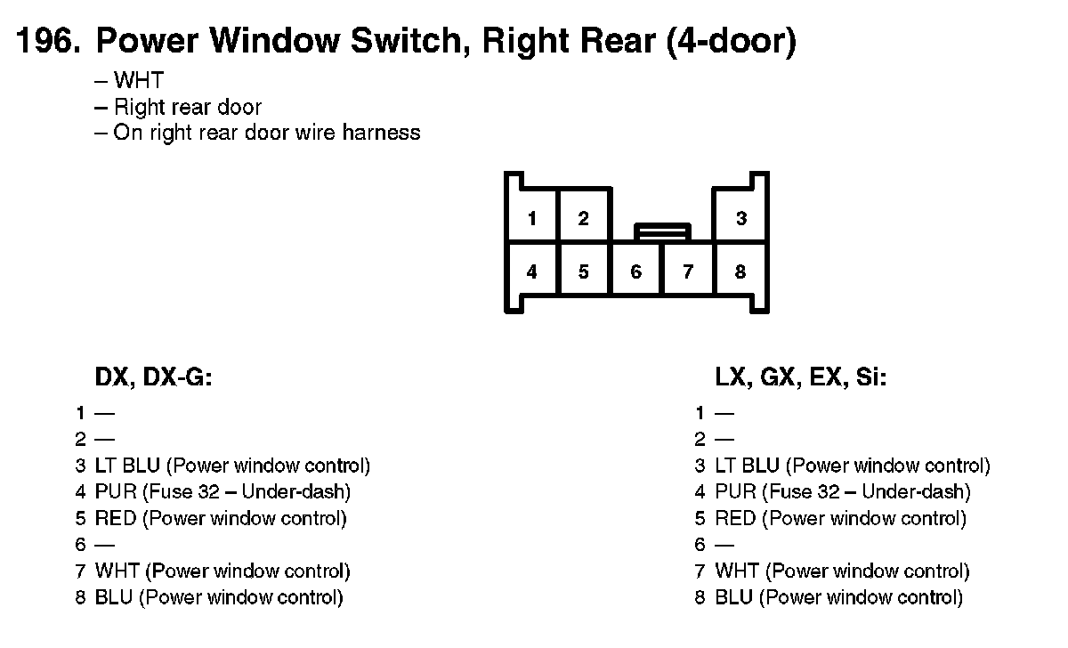 196. Power Window Switch, Right Rear (4-door):