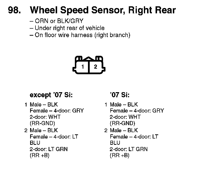 98. Wheel Speed Sensor, Right Rear: