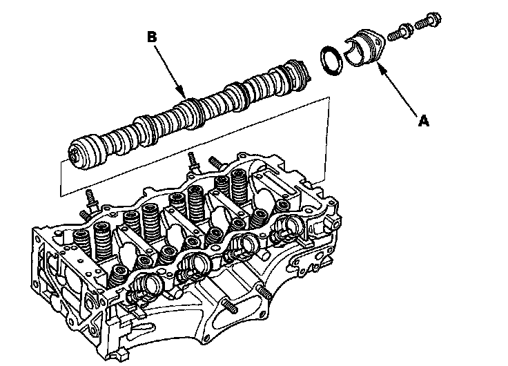 thrust cover (A), then pull out the camshaft (B).