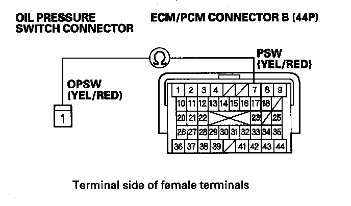 9. Disconnect ECM/PCM connector B (44P) and oil pressure switch connector.