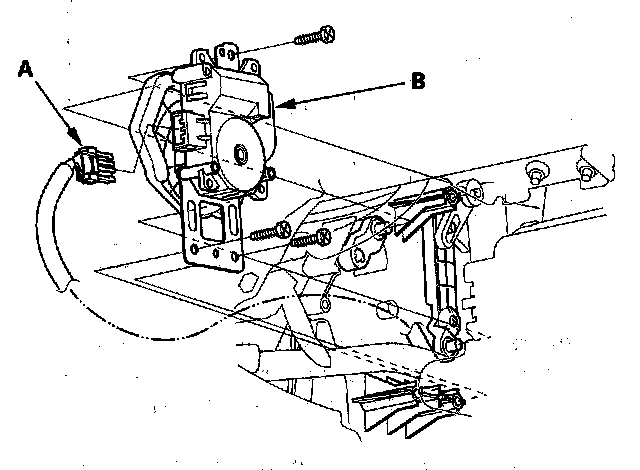 3. Disconnect the 7P connector (A) from the mode control motor (B). Remove the self-tapping screws and the mode control motor from the heater unit.