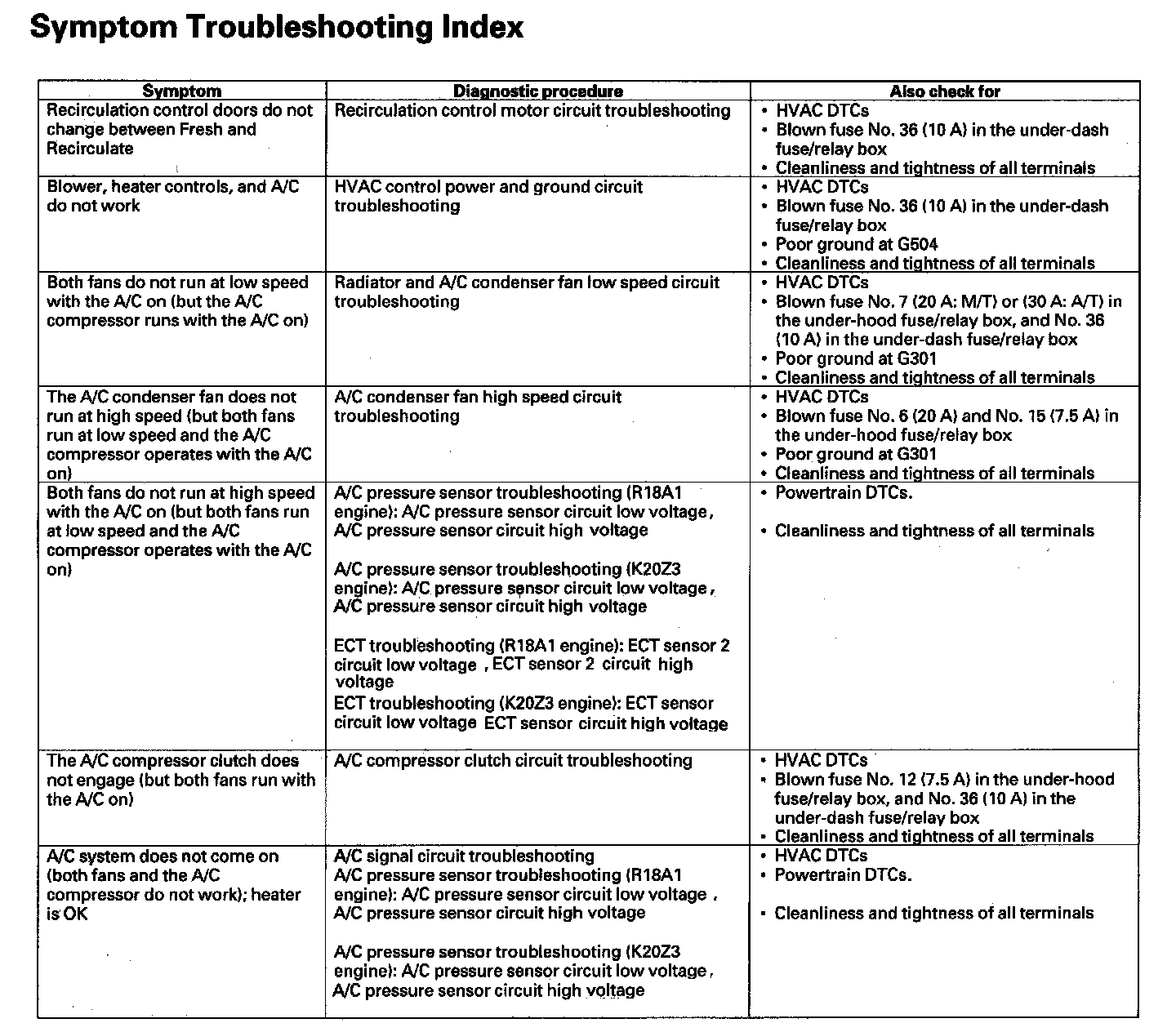 Symptom Troubleshooting Index: