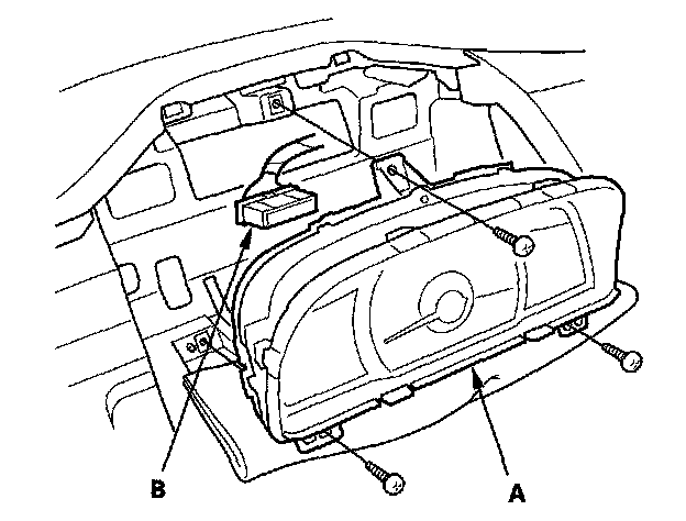 3. Disconnect the 12P connector (B) from the gauge control module (speedo).
