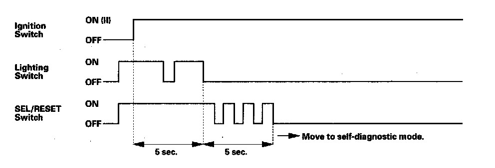 - If the vehicle speed exceeds 1.2 mph (2 km/h) or the ignition switch is turned OFF, the self-diagnostic mode ends.