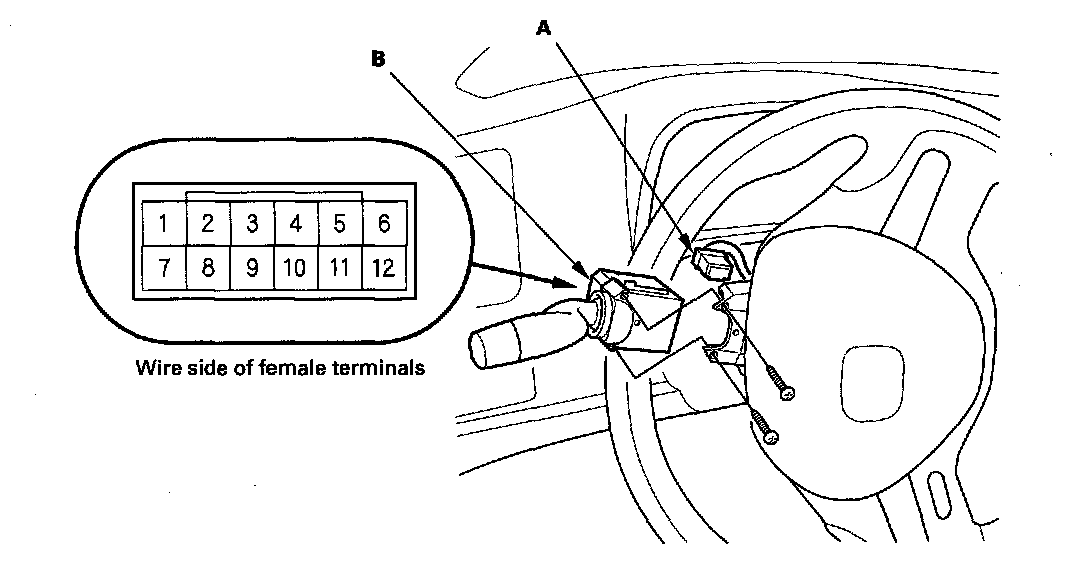 3. Disconnect the 12P connector (A) from the combination light switch (B).