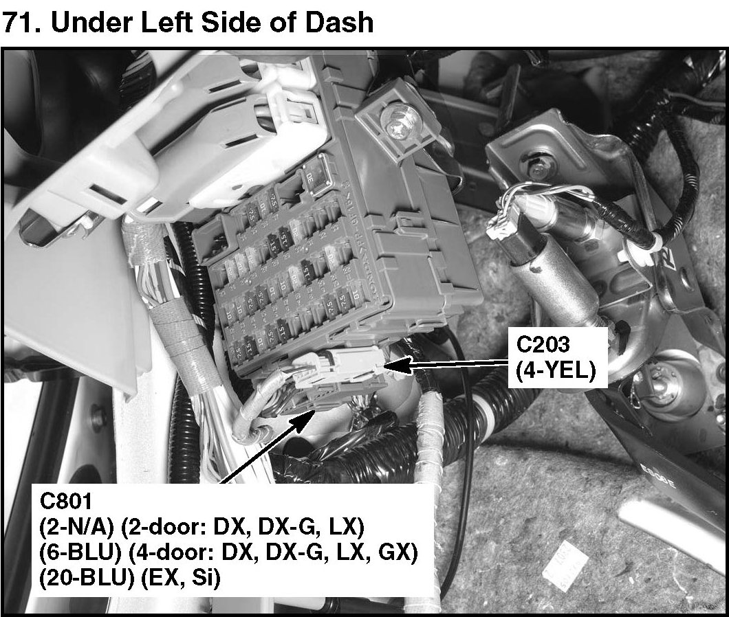 71. Under Left Side Of Dash:
