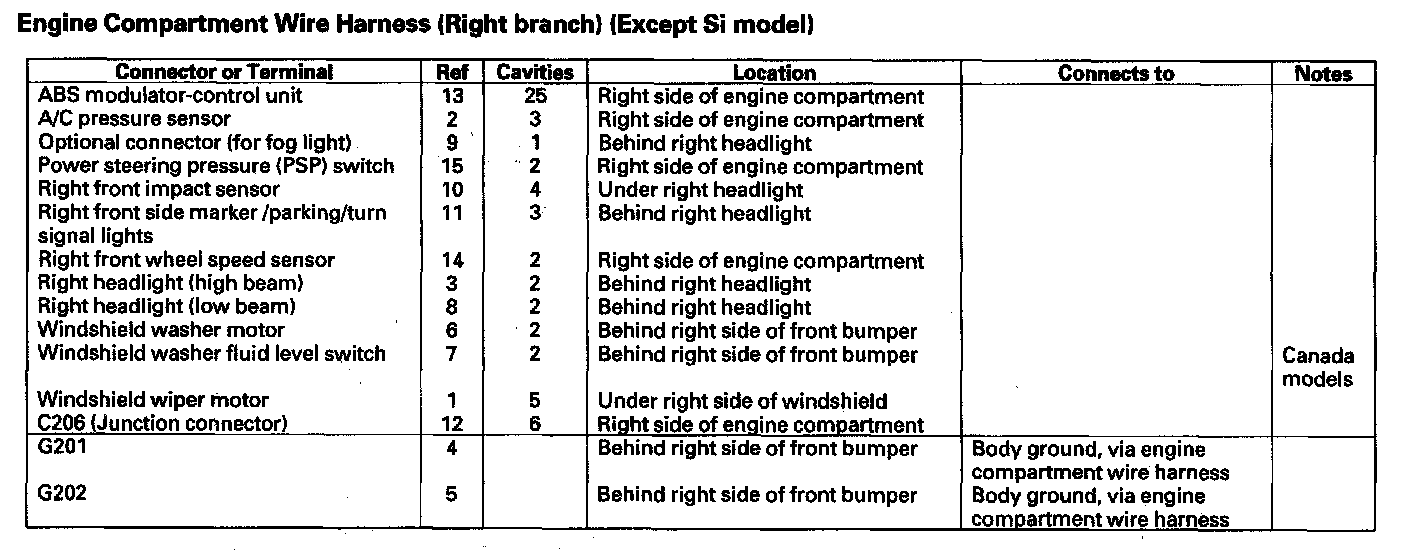 Engine Compartment Wire Harness (Right Branch) (Except Si Model)