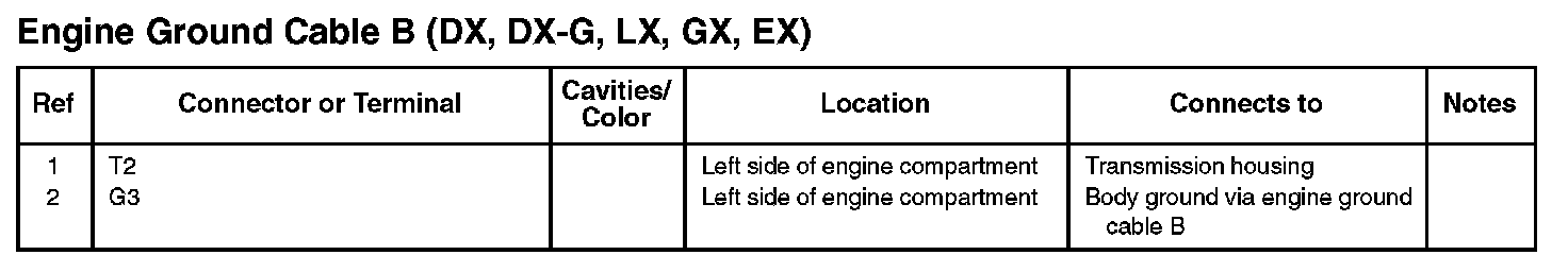 Engine Ground Cable B (DX, DX-G, LX, GX, EX):