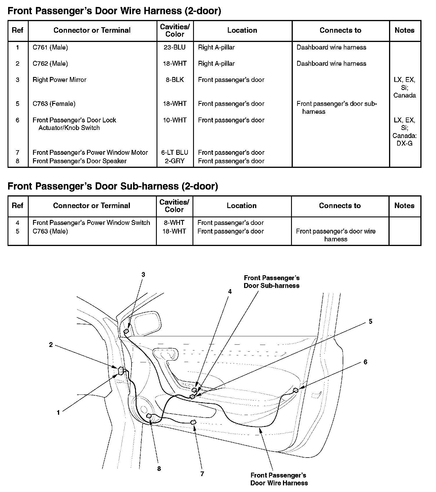 Front Passenger's Door Wire Harness (2-door)/Front Passenger's Door Sub-harness (2-door):
