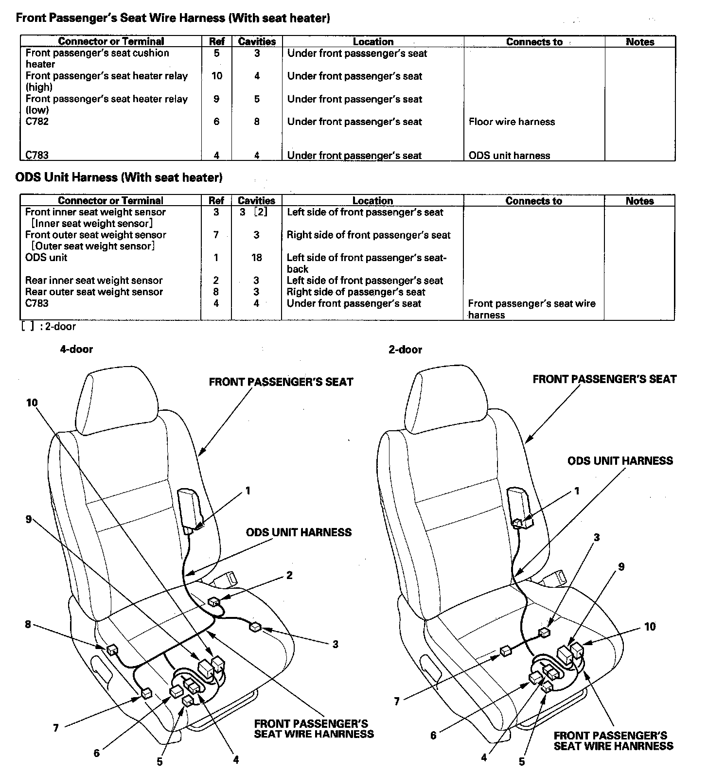 Front Passenger's Seat Wire Harness (With Seat Heater)/ODS Unit Harness (With Seat Heater):