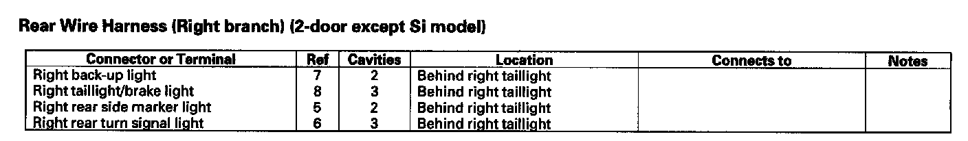 Rear Wire Harness (Right Branch) (2-door Except Si Model):