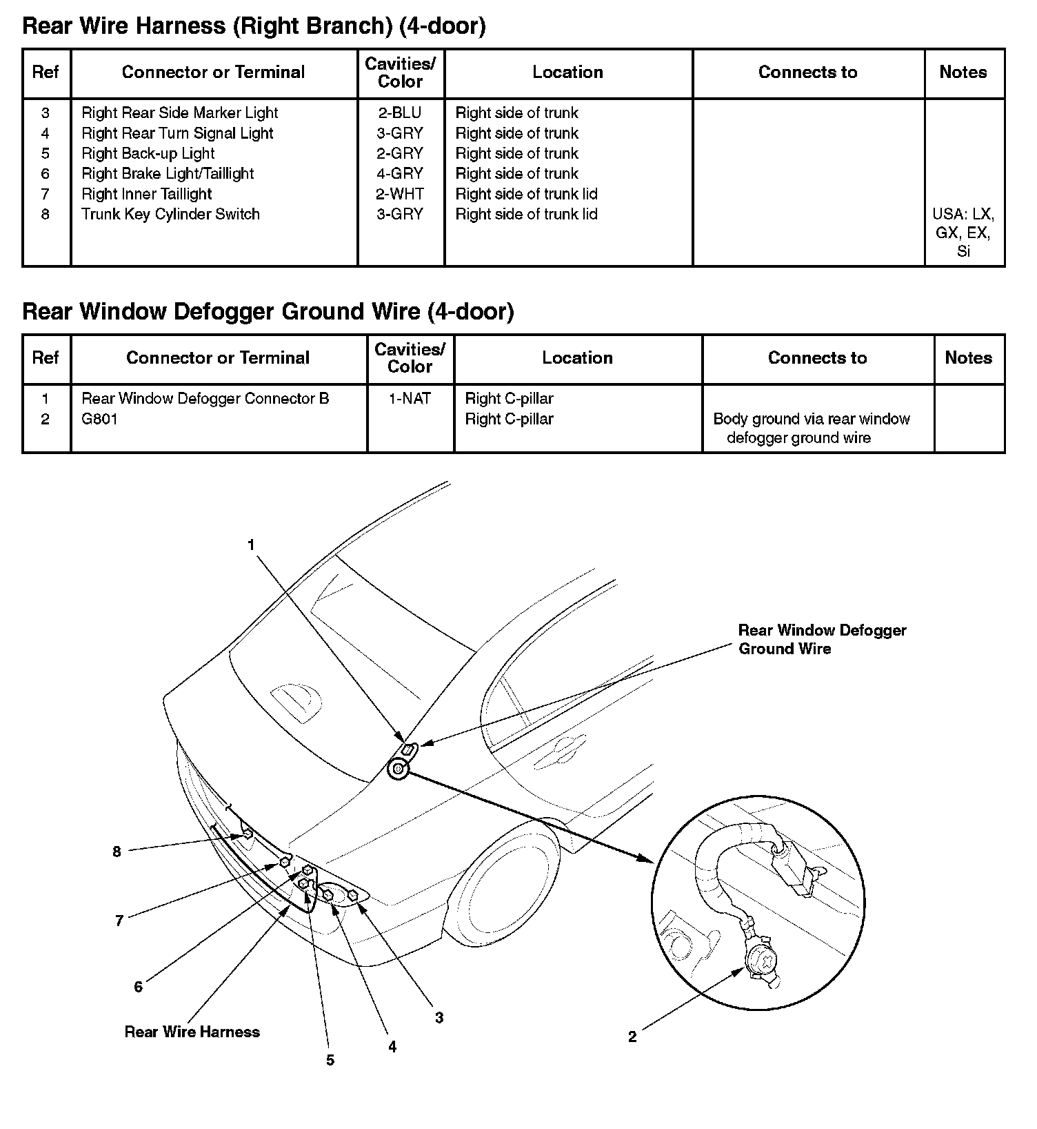 Rear Wire Harness (Right Branch) (4-door)/Rear Window Defogger Ground Wire (4-door):