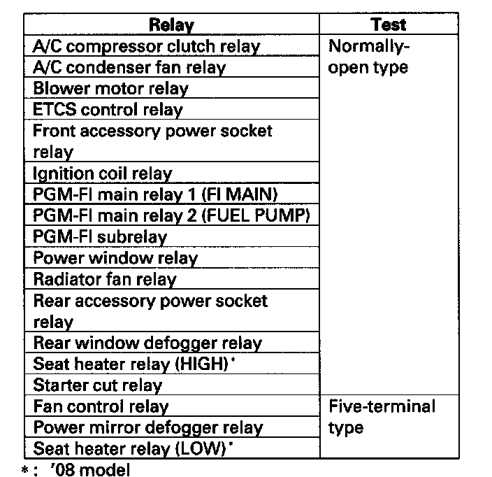 Main Relay (Computer/Fuel System): Testing and Inspection