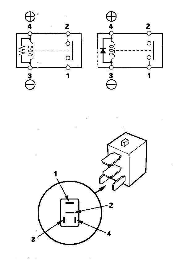 - There should be continuity between the No. 1 and No. 2 terminals when battery positive terminal is connected to the No. 4 terminal, and battery negative terminal is connected to the No. 3 terminal.