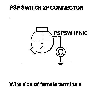 13. Check for continuity between PSP switch 2P connector terminal No. 1 and body ground.
