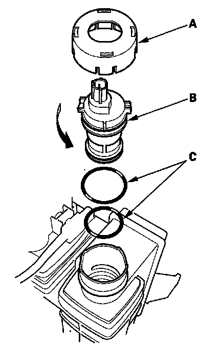 7. Install the EVAP canister vent shut valve in the new EVAP canister with new O-rings (C).