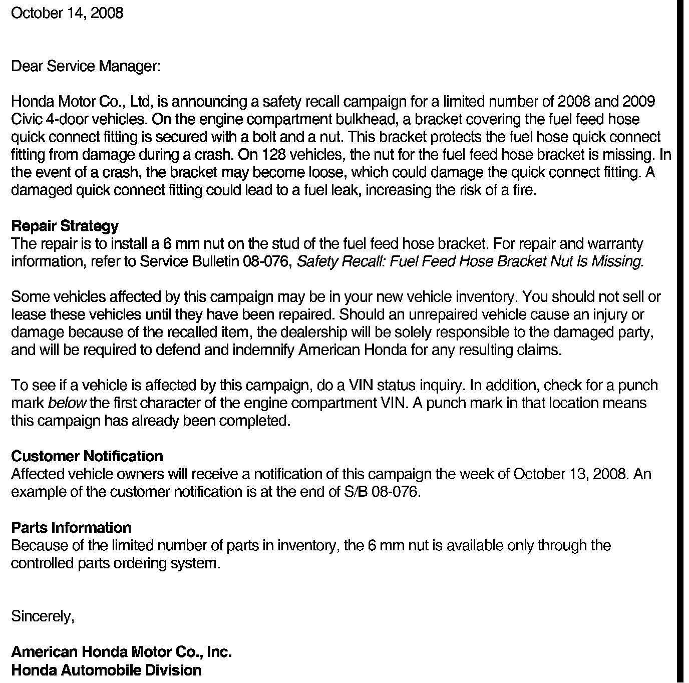 Recall - Fuel Feed Hose Bracket Nut Missing