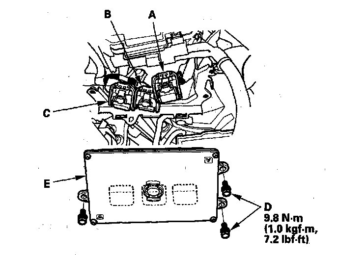 NOTE: PCM connectors A, B, and C have symbols (A = square, B = triangle, C = circle) embossed on them for identification.