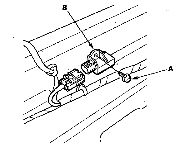 5. Using a TORX T30 bit, remove the TORX bolt (A), then remove the rear safing sensor (B).